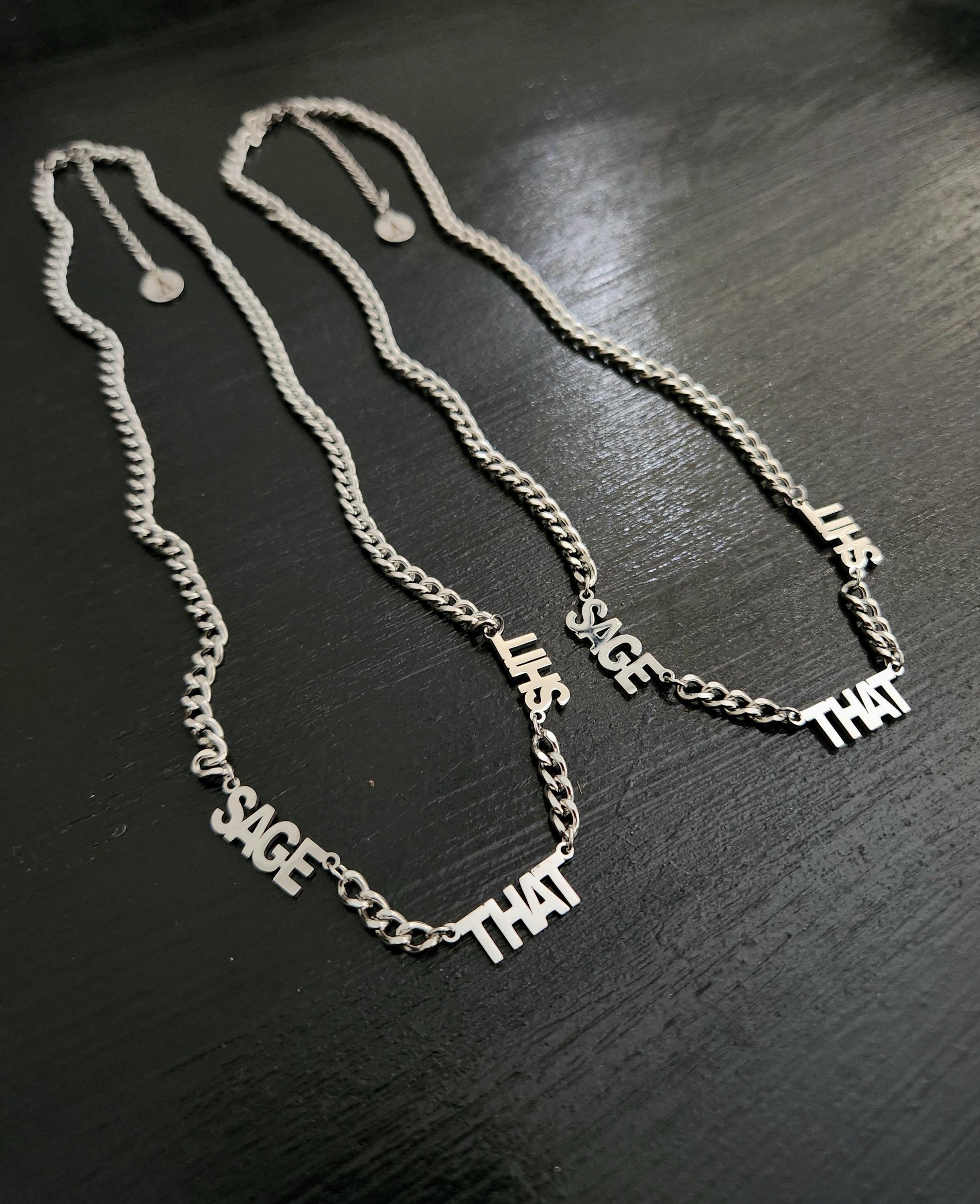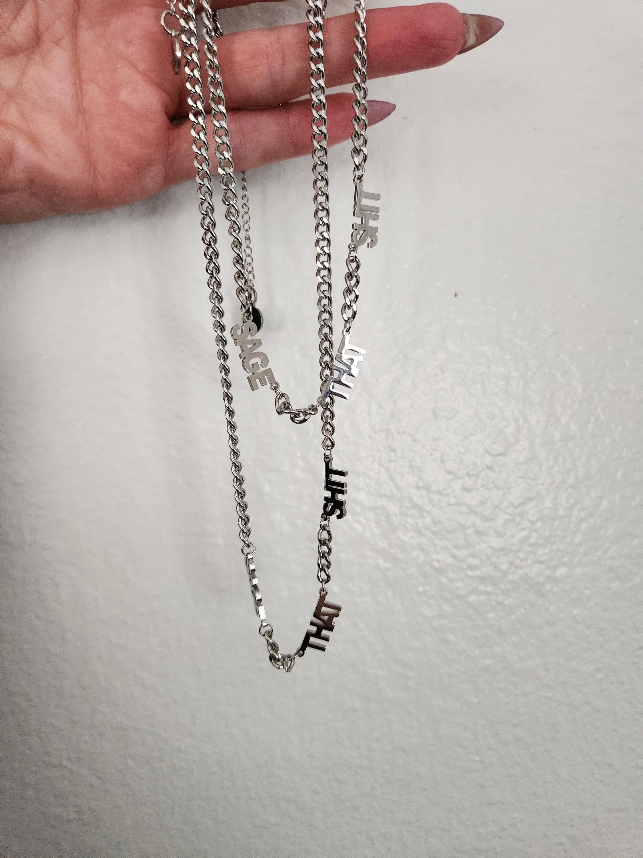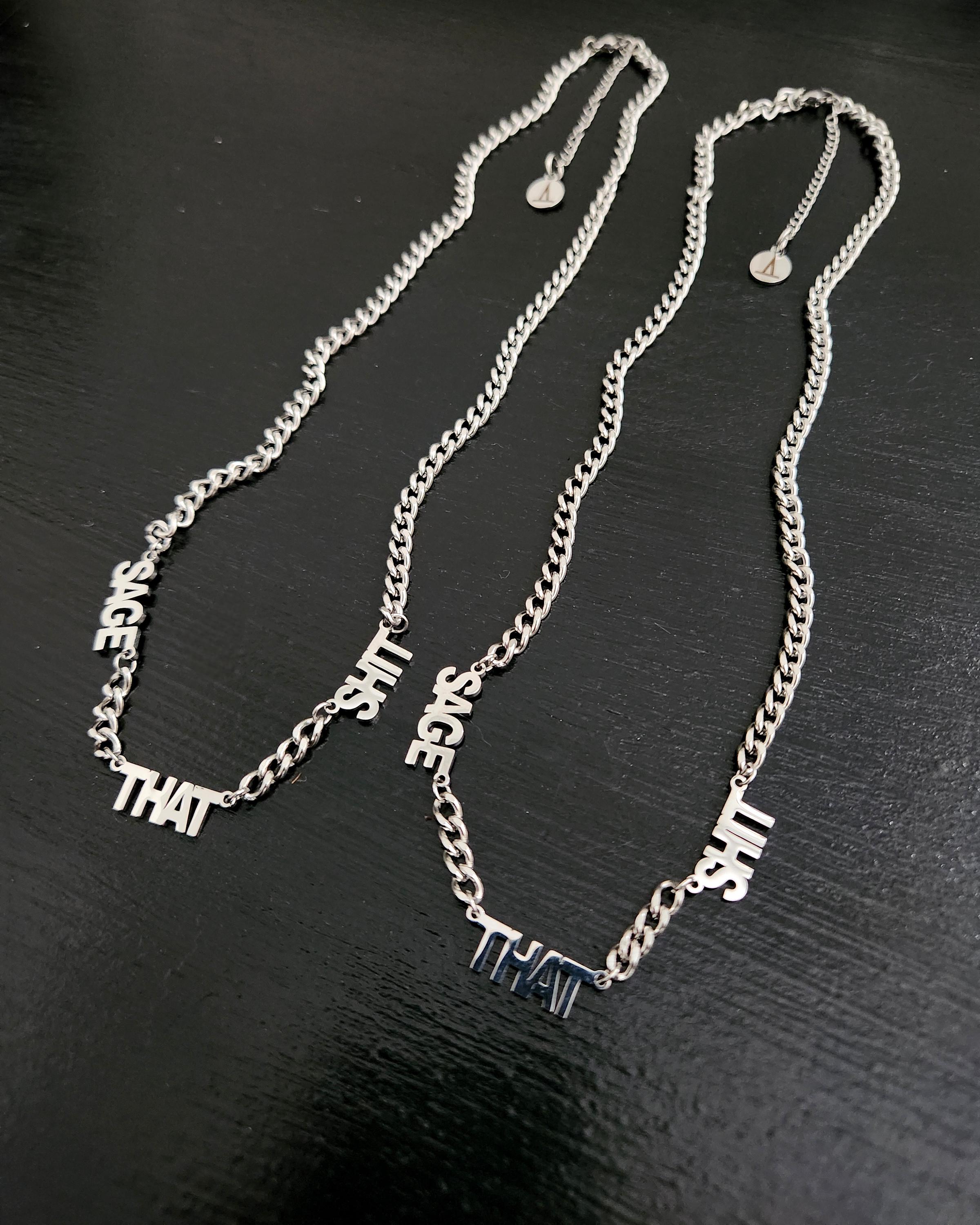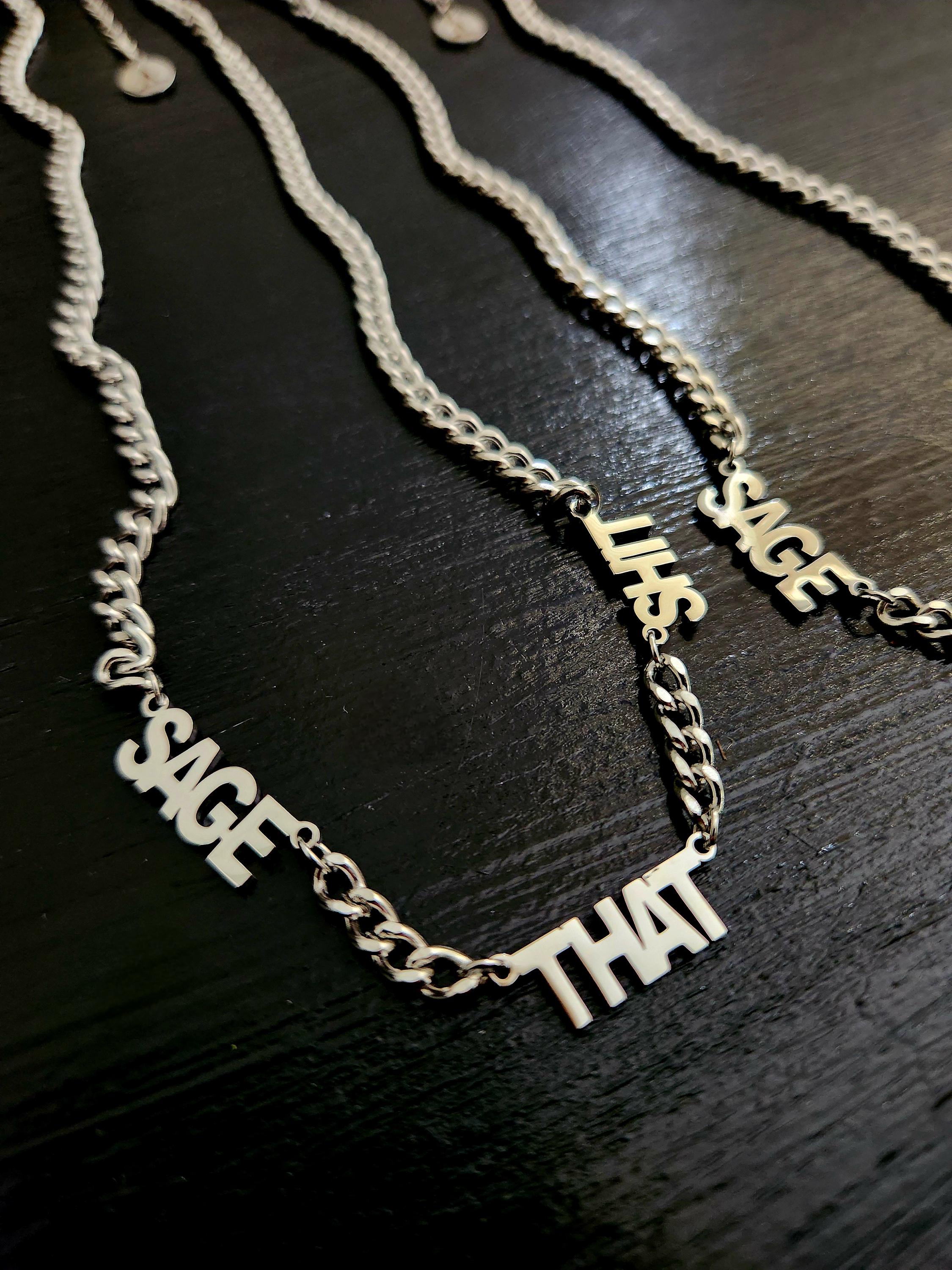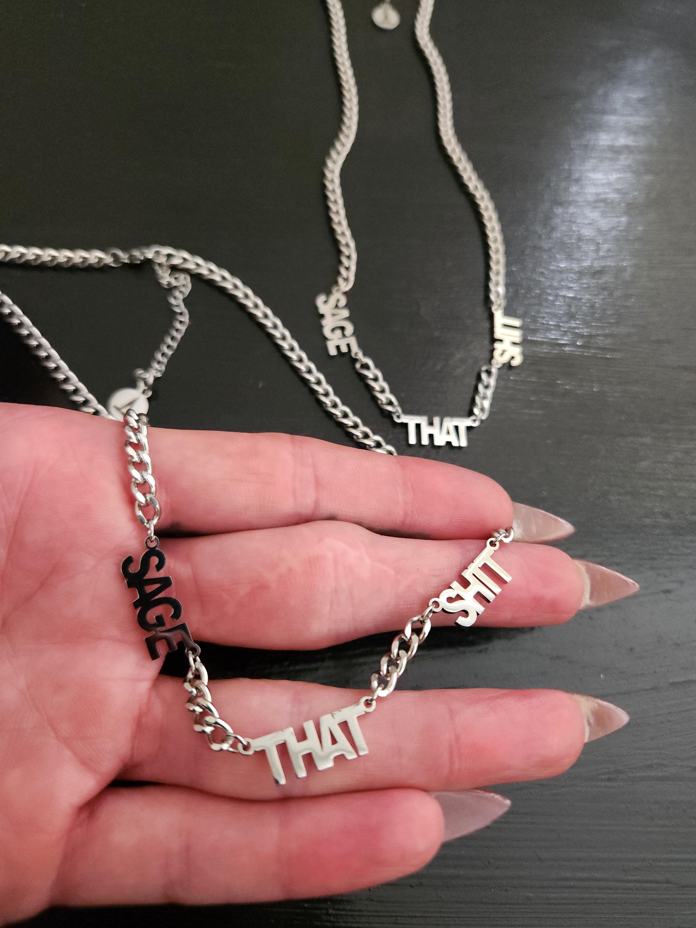 -Stainless steel "SAGE THAT SHIT" charm text