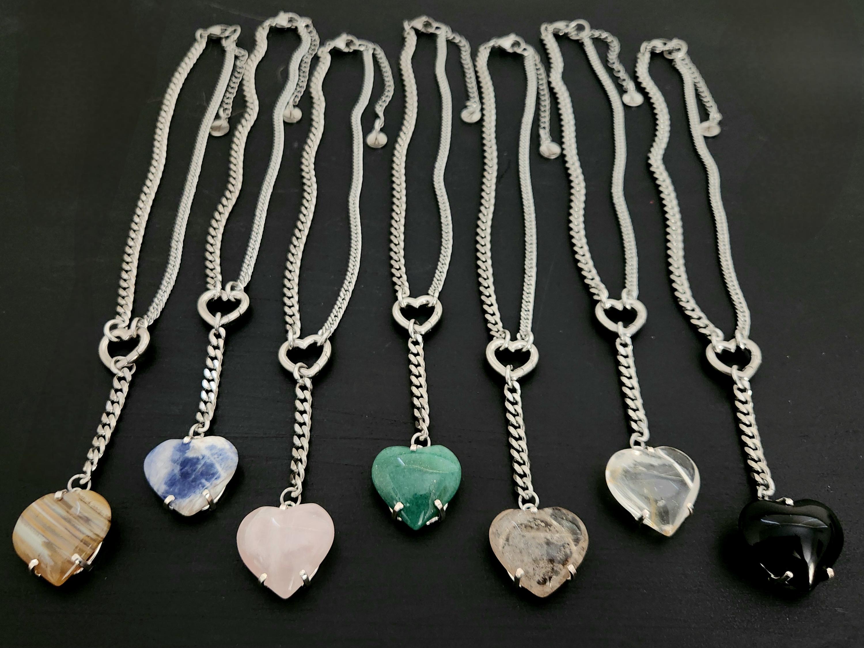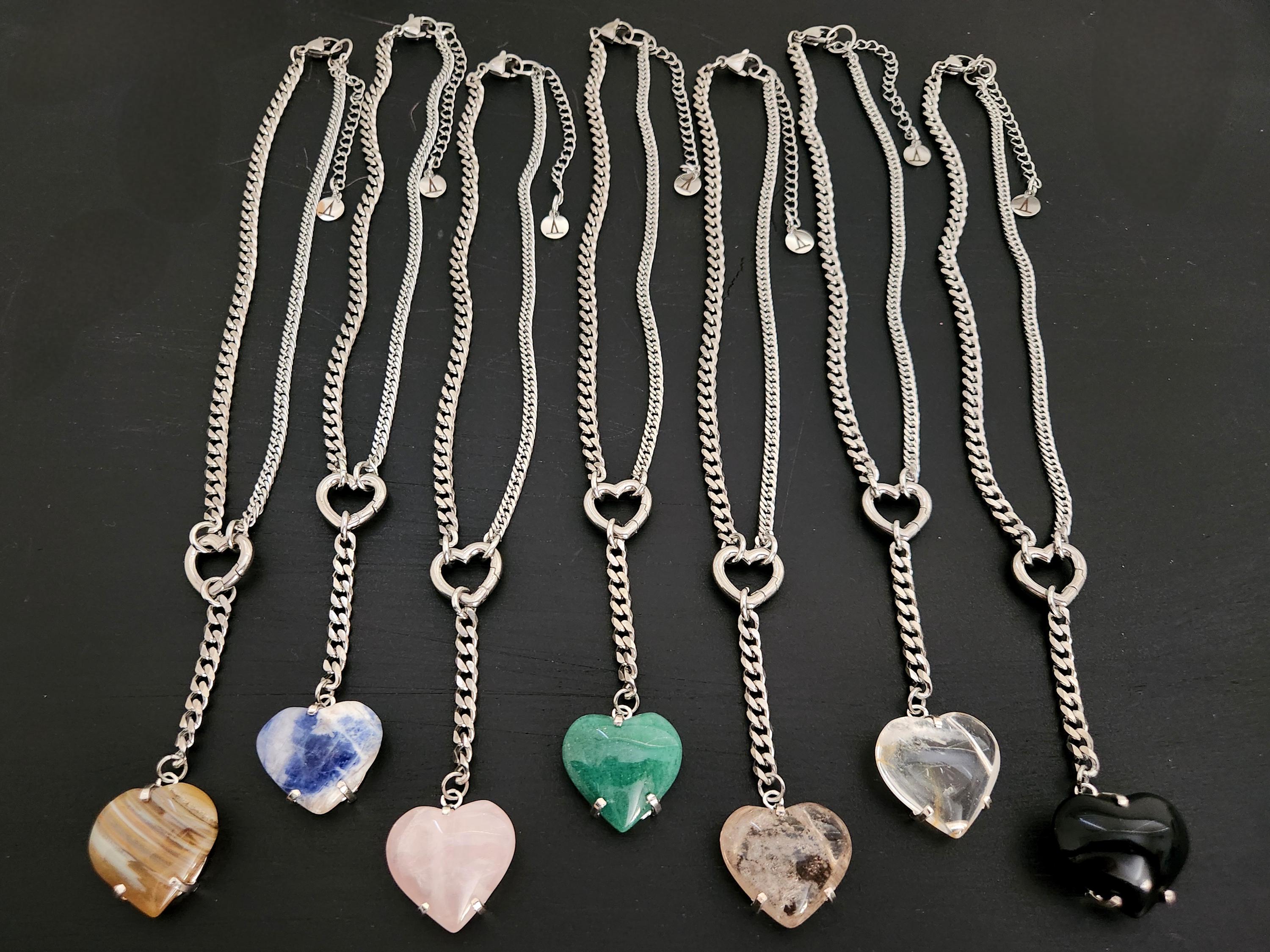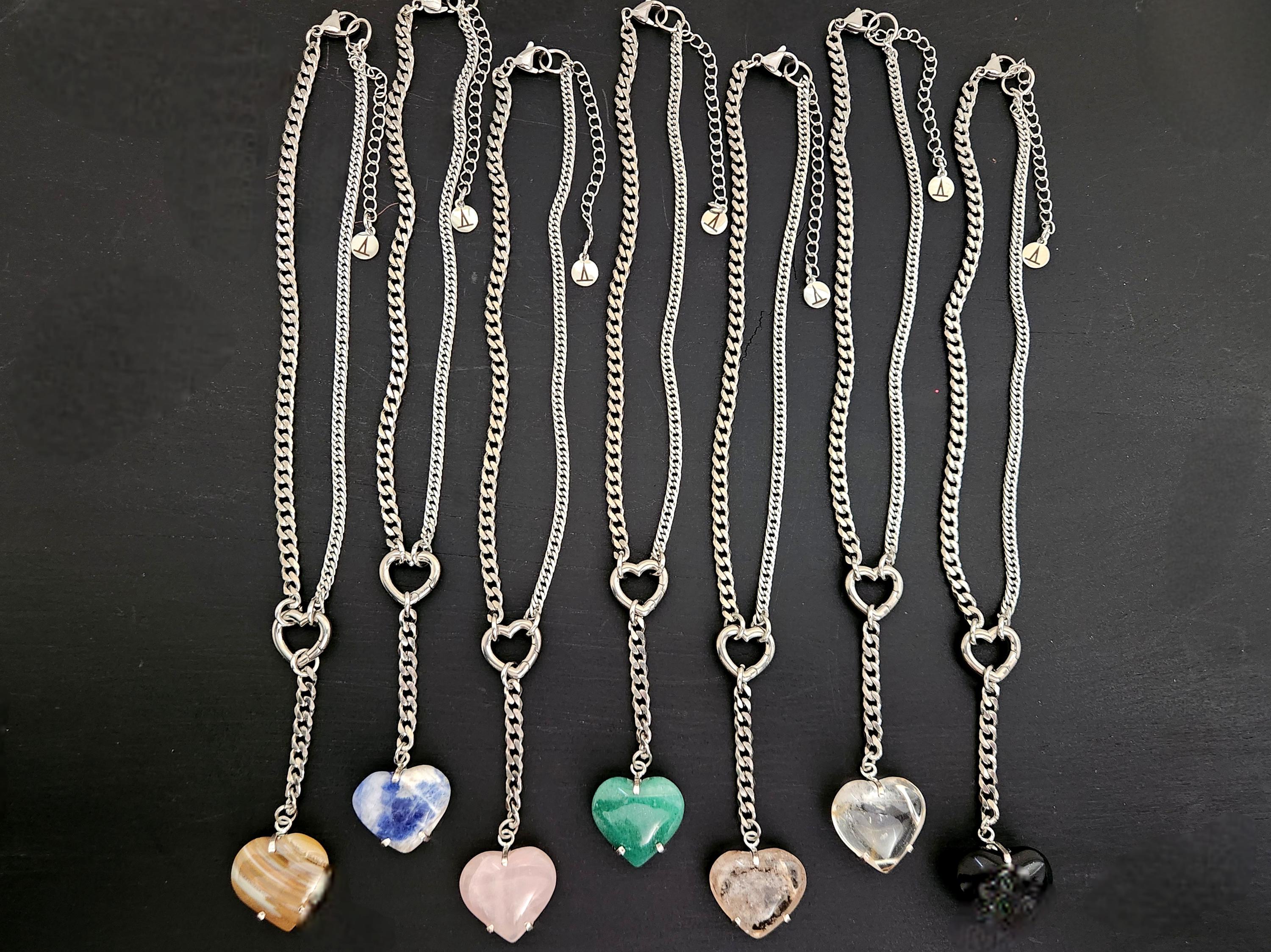 -14" stainless steel mixed curb chain & findings w/ 3" drop heart.