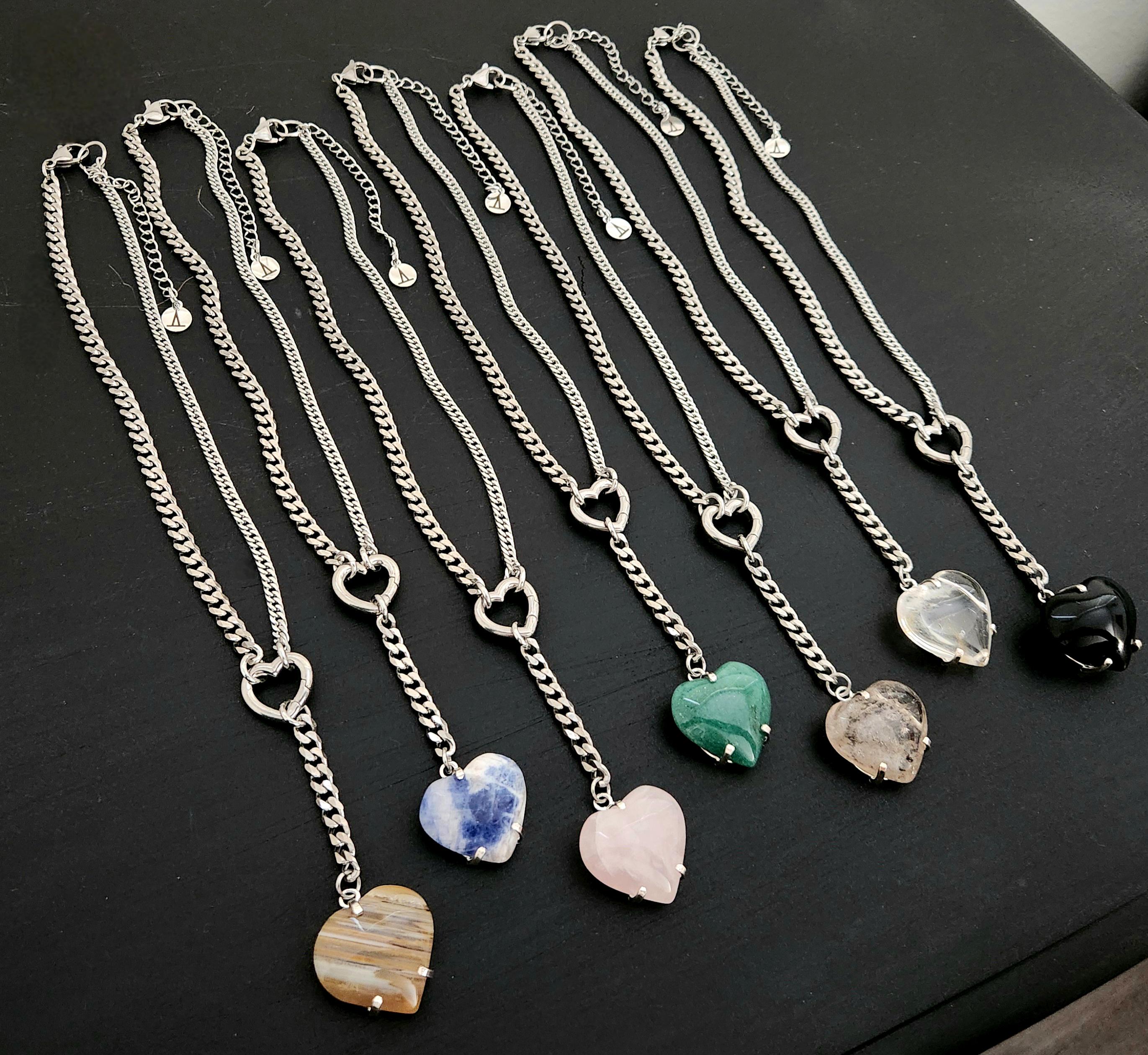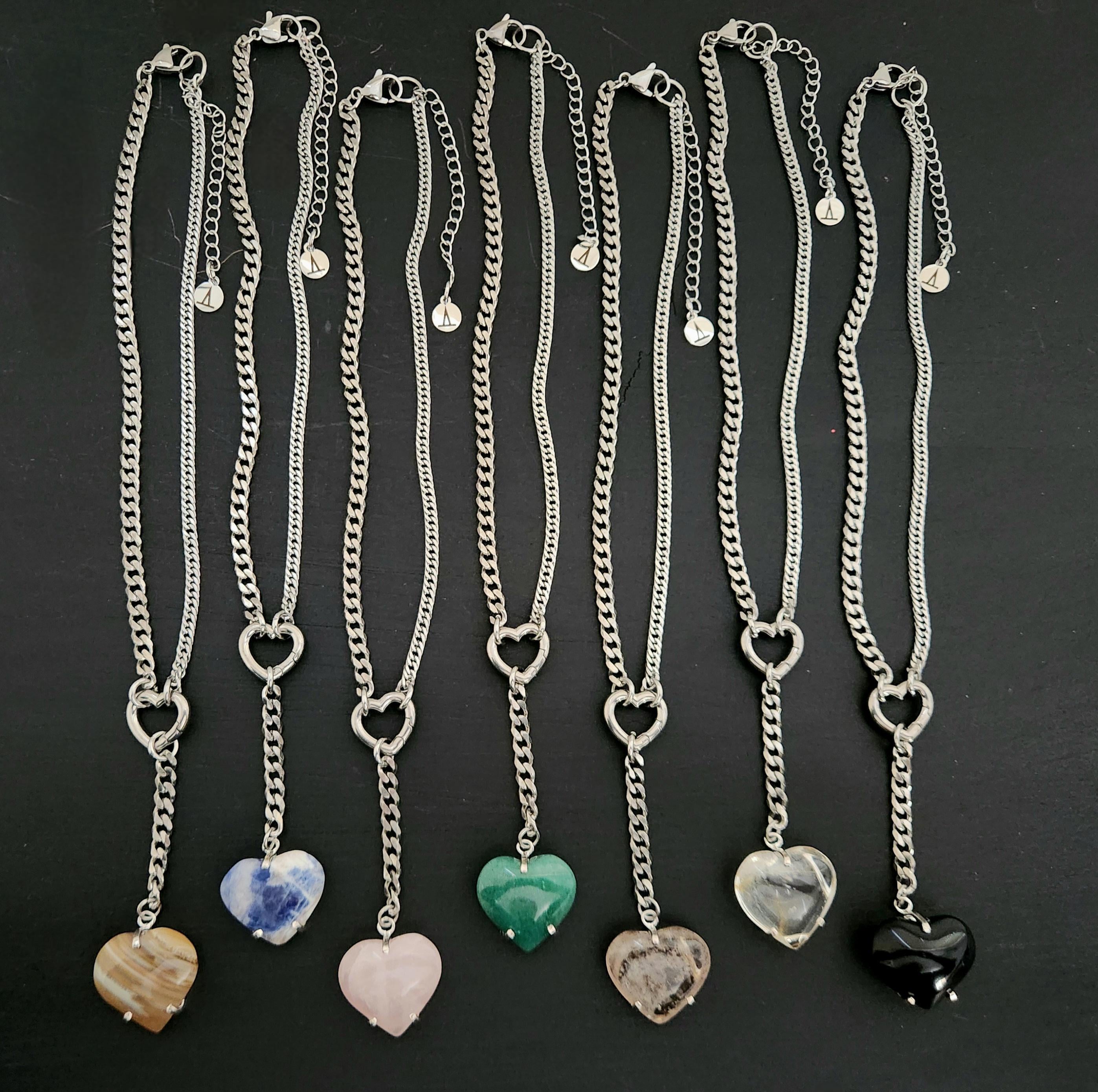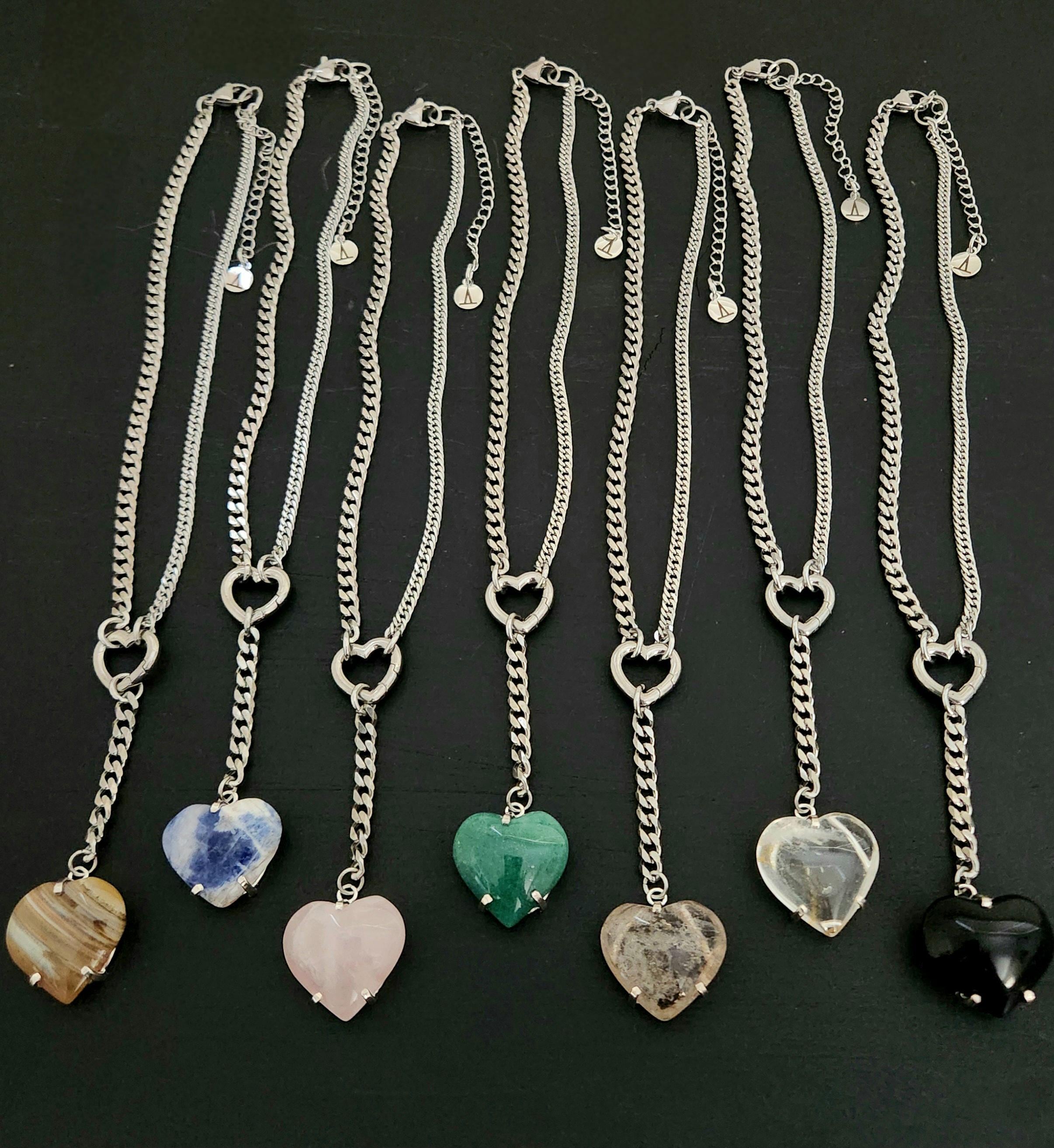 -14" stainless steel mixed curb chain & findings w/ 3" drop heart.