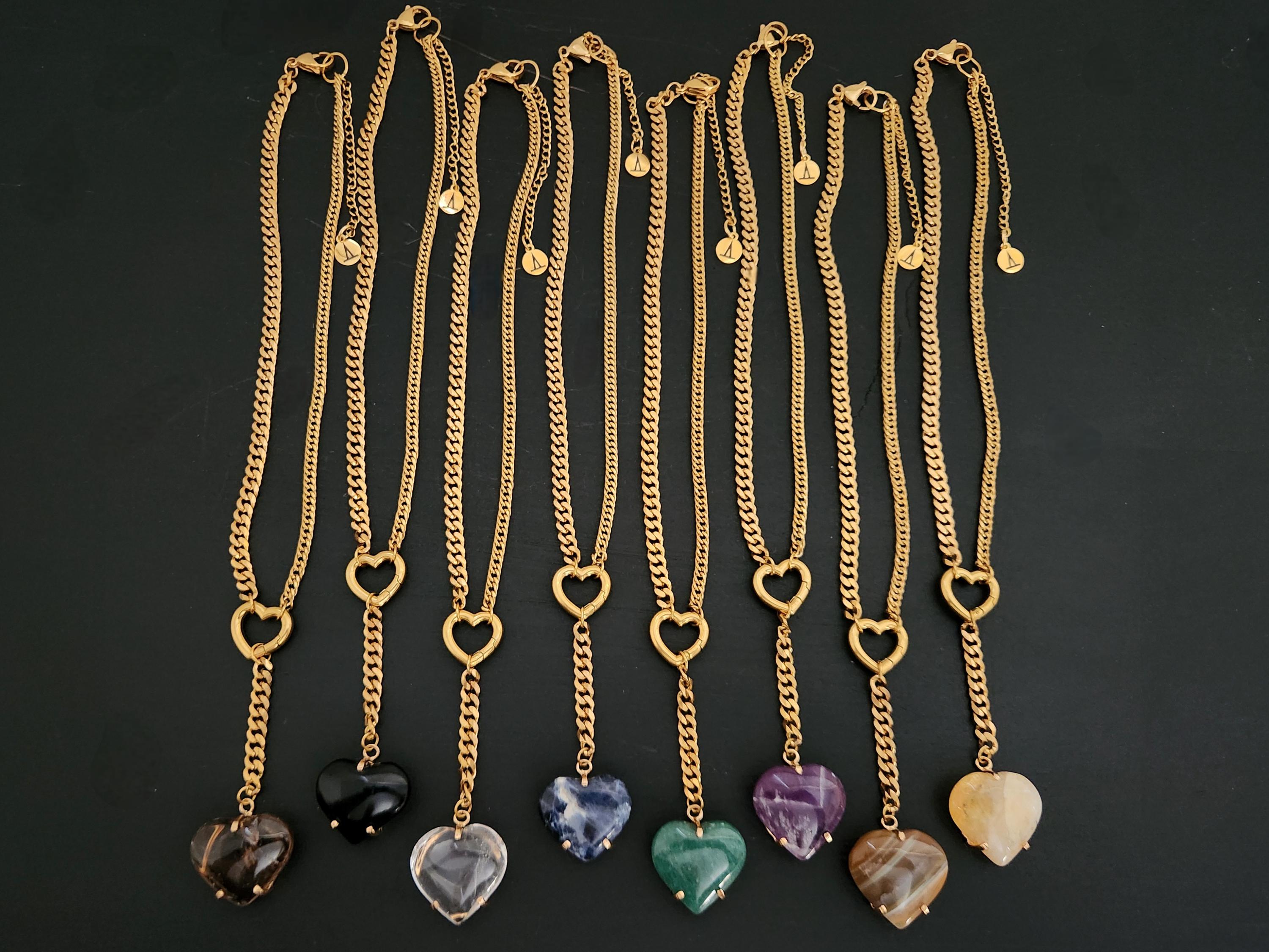 -14" 14k gold plated stainless steel mixed curb chain & findings w/ 3" drop heart.